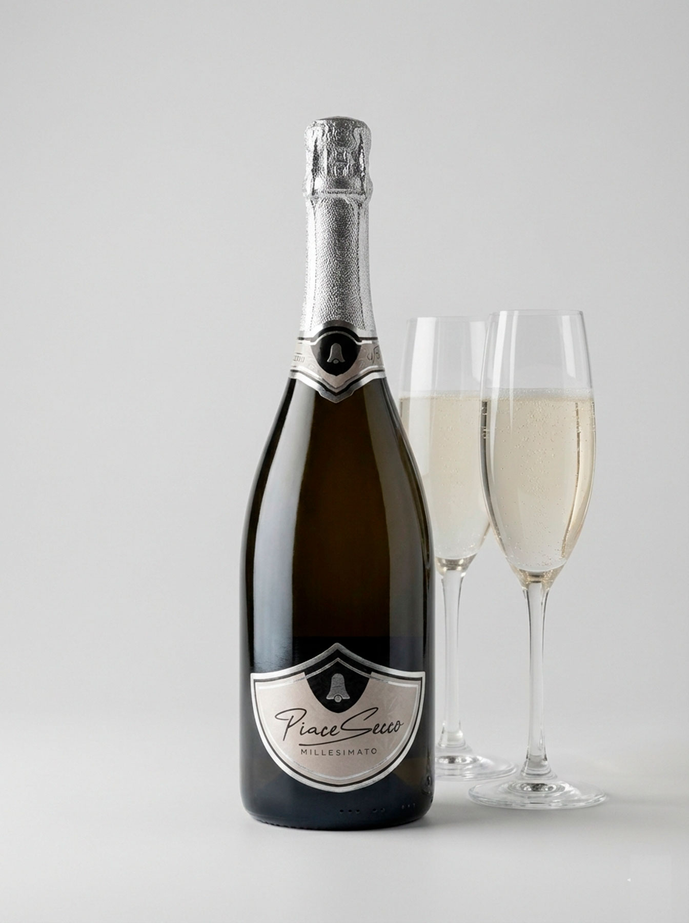 Spumante secco, bianco platino con riflessi tendenti al giallo chiaro. Bollicine fini e persistenti.